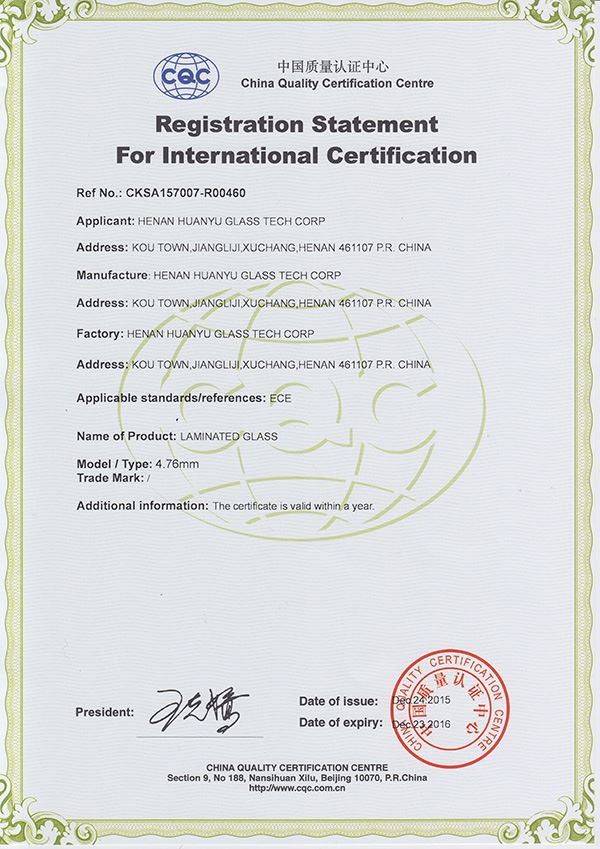• Xuchang Huanyu Safety Glass Co., Ltd. ,formally founded on Oct 1st, 2004